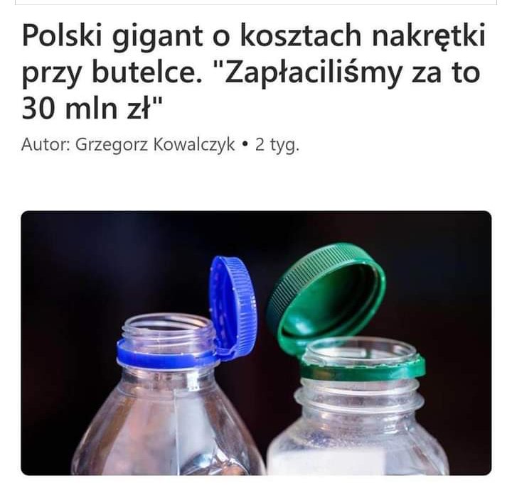 Ktoś musiał zarobić, szkoda, że teraz utrudnili ludziom życie. Niby taki nic. Ot nakrętka. Ale wkurza masakrycznie. I to jeszcze w napojach zrozumiem, ale mleko. I tak wszystkie odrywam. U mnie w miasteczku jest pojemnik na nakrętki zbierane na cele harytatywne. Powinni ludzi zachęcić do tego, a nie do wyrzucania tych nakrętek do śmieci. T…Zobacz więcej