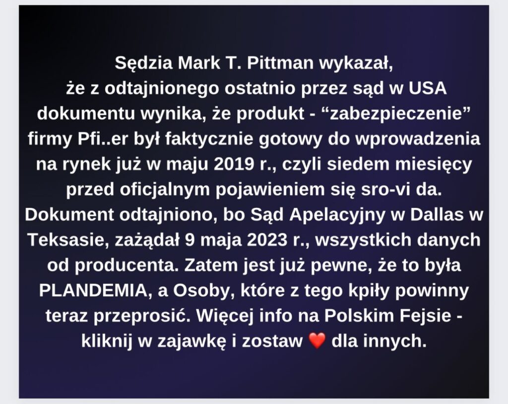 A ja sam biję się z myślami. Zazwyczaj jestem zwolennikiem zrównoważonych opinii, że np: w tym wypadku wiedzieli wcześniej, że to może się przekształcić w światową pandemię i zadziałali w razie czego, opracowując szczepionkę zawczasu. Z drugiej strony, wszystko w tym scenariuszu Covidowym przebiegało jakby po nitce do kłębka. Temat covida w zasadzie się skończył, kiedy ludzie się już tym „zmęczyli” i jednocześnie wybuchła Ukraińska wojna. Potem jedynie przebąkiwali coś w radio. Do tego, skutki uboczne szczepionki są odczuwalne do teraz. Ja, pomimo wątpliwości, uległem i przyjąłem 2 dawki. Następne dwa lata były dość dziwne. Pogorszenie ukrwienia w dłoniach i nogach, jak całe życie moje stopy i dłonie wręcz parzyły (nawet zimą). Pogorszona wydolność i zwiększona częstotliwość urazów ścięgien! Teraz jest już o wiele lepiej ale nigdy już nie dam się na coś takiego skusić. Szczepiona musi być sprawdzona, nie ważne, jakby straszyli.