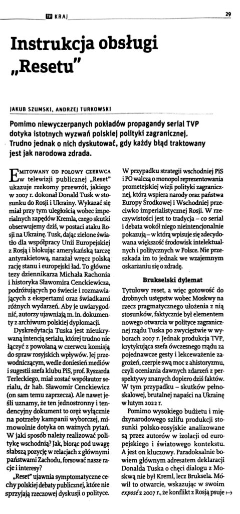 Niektórzy film Reset próbują dyskredytować uznając, że ten film niesłusznie potępia i ukazuje „misie” i przytulanki Tuska i srutina, bo rzekomo Tusk w tamtym czasie nie mógł przecież wiedzieć, co wydarzy się w 2022. I właśnie na tej podstawie krytycy filmu tłumaczą, że Tusk przecież w dobrej wierze „polityki miłości” liczył na reset z Rosją, na…Zobacz więcej