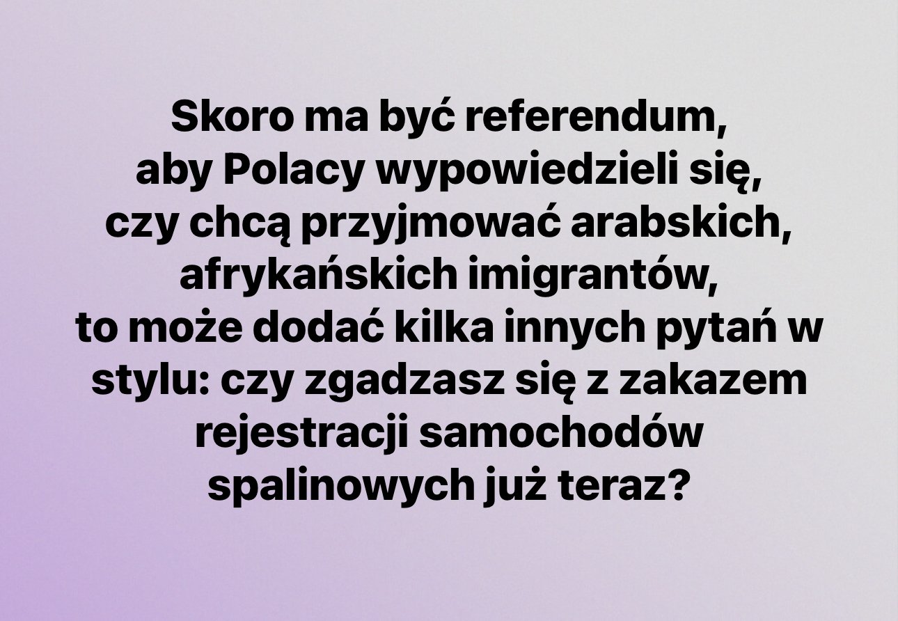 te referendum to fikcja , zasłona dymna przed wyborami iluzja ,ze ludzie mają jakiś wybór a i tak zrobią co chcą , nikt nas się nie pytał czy chcemy przesiedleńców z ukry , można było ich przenieśc do lwowa tam nie ma ostrzałów ( wiem z pierwszej ręki , jest tam syn , znajomej mamy z jej pracy ) można było tam pomóc na miejscu humanitarnie i tyl…Zobacz więcej