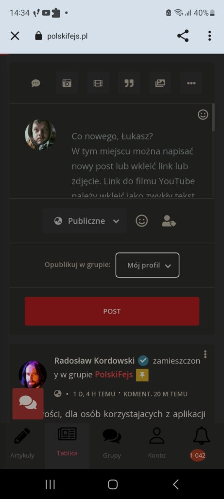 Radosław Kordowski zamieszczony w temacie PolskiFejs