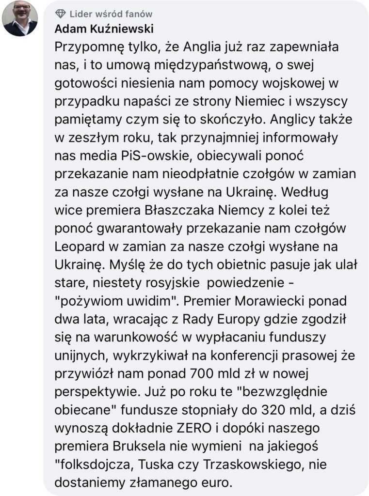 Uważam, że pieniądze z z KPO Polska już dawno powinna dostać, a winę za ich brak ponosi niepraworządna polityka decydentów UE i zdradziecka działalność polityków z polskiej opozycji. Choć do dziś nie mamy należnych nam środków to i tak polski rząd radzi sobie w czasach kryzysów lepiej niż większość innych państw w UE. Myślę, że bez względu n…Zobacz więcej