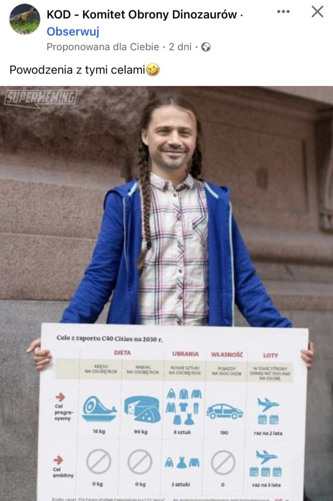 Z uwagi na to, że Pan Trzaskowski zachęca Warszawiaków do przyjęcia nowych celów klimatycznych, Komitet obrony dinozaurów przygotował stosowną grafikę pamiątkową.