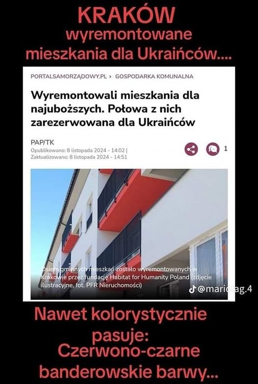 O to chodzi, że nic dla nikogo nie powinno być rezerwowane. Ukrainiec mieszkający i pracujący w Polsce tak jak Polak powinien złożyć niezbędne dokumenty i czekać w kolejce na przyznanie mieszkania. Polacy czekają po kilka, kilkanaście lat to Ukraińcy też mogą.