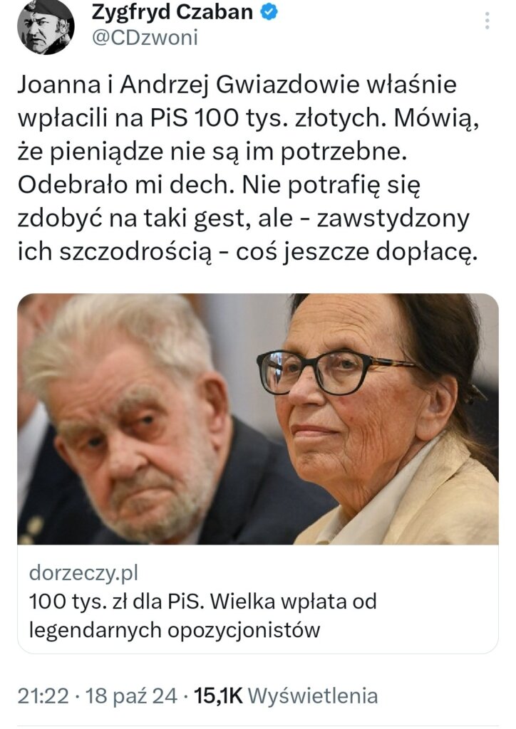 Podziwiam. Ja złotówki na PiS nie wpłaciłem i raczej nie wpłacę.