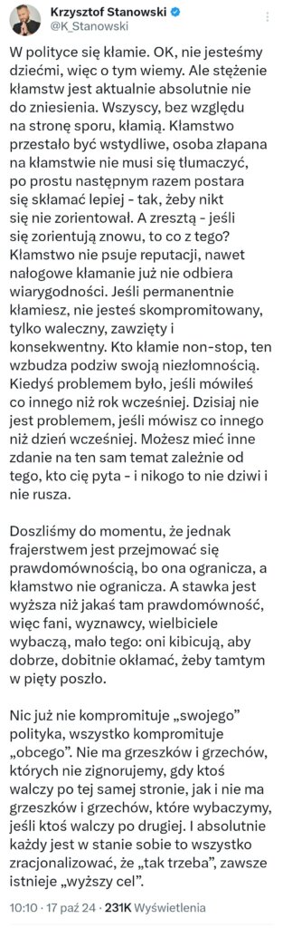 Nawet w polityce nie wszyscy kłamią. W rzeczywistości są politycy wiarygodni, np. Jarosław Kaczyński.