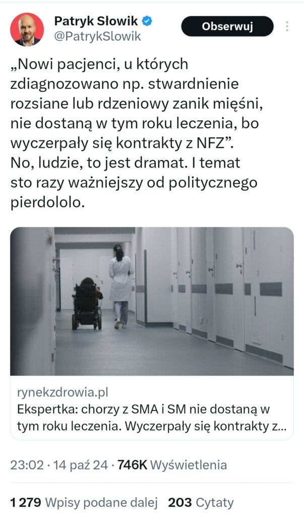 W powyższej sprawie – Ministra zdrowia Izabela Leszczyna zapowiedziała, że Narodowy Fundusz Zdrowia zapłaci za leczenie pacjentów ze stwardnieniem rozsianym w ramach programu lekowego, także ponad limit. Podkreślił…Zobacz więcej