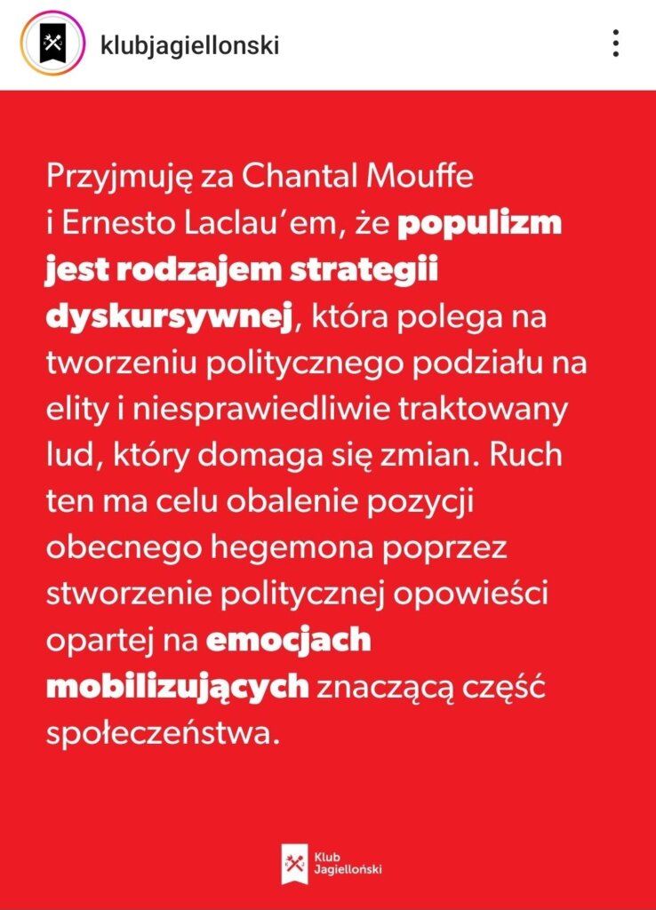 @eljot60 podkręcanie emocji na kontraście „oni” – uprzywilejowani i „my” – biedni. Artykuł KJ mówi o populizmie katolickim jako słusznym, gdzie warto np. lansować idee rodziny