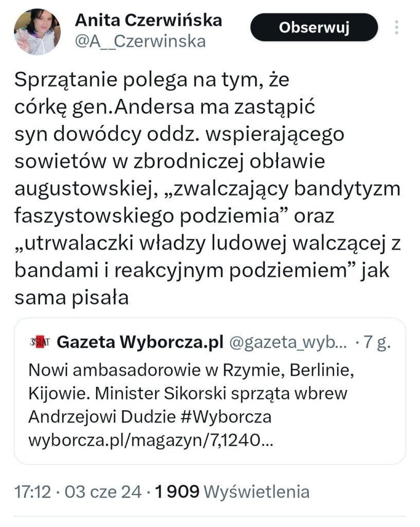 To po prostu jakiś kosmos. Córka Andersa zastąpiona synem komunisty zbrodniarza