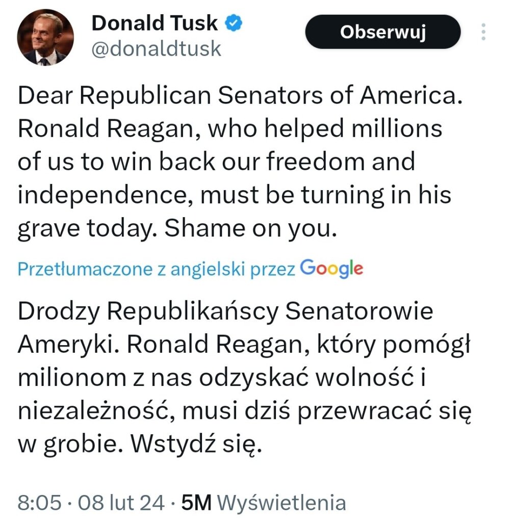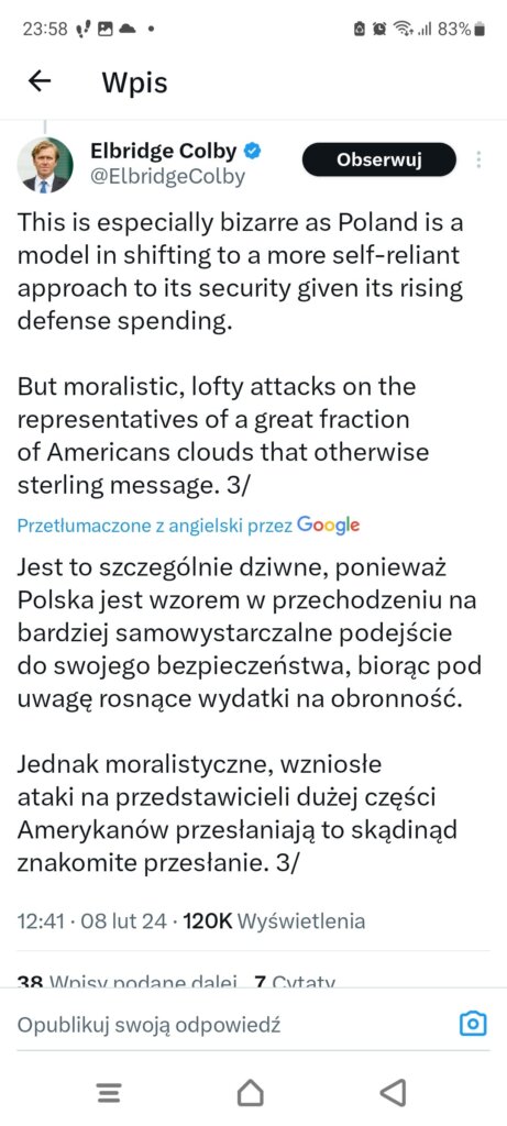@eljot60 dokładnie, to uwieszanie się na Amerykanach musi być frustrujące dla nich. I naprawdę żenujące są takie komunikaty od ważnych polityków europejskich, pokazują ich uzależnienie i roszczeniowość. Potem się dziwimy, ze USA nie traktuje nas jako równorzędnego partnera, skoro komunikujemy się jak petent.
