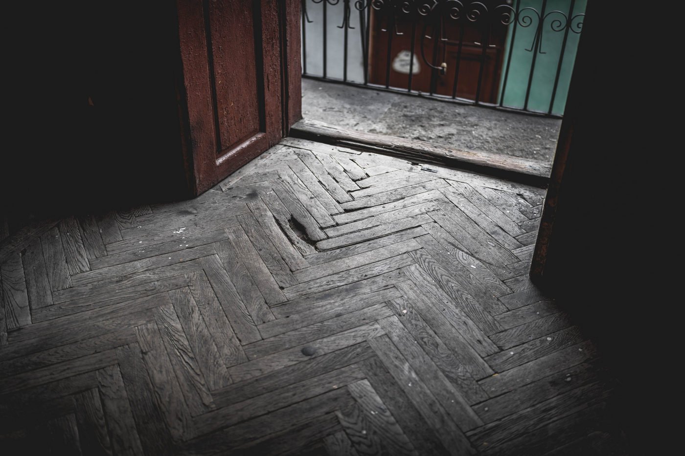 @joanna jest to wejście z klatki schodowej na coś w rodzaju balkonów wokół podwórka. To taki wzruszający klimat dawnych czasów, dziś pewnie parkiet na klatce schodowej to byłaby niedostępna rezydencja – i tak pewnie będzie po remoncie, jeśli kiedyś nastąpi. A więc to chwila, gdy można tam jeszcze wejść niepostrzeżenie i bez konsekwencji