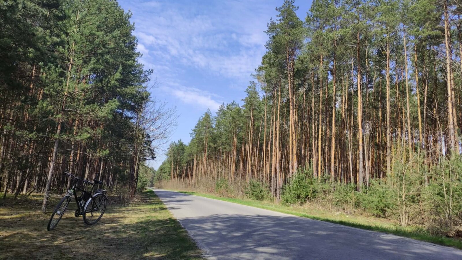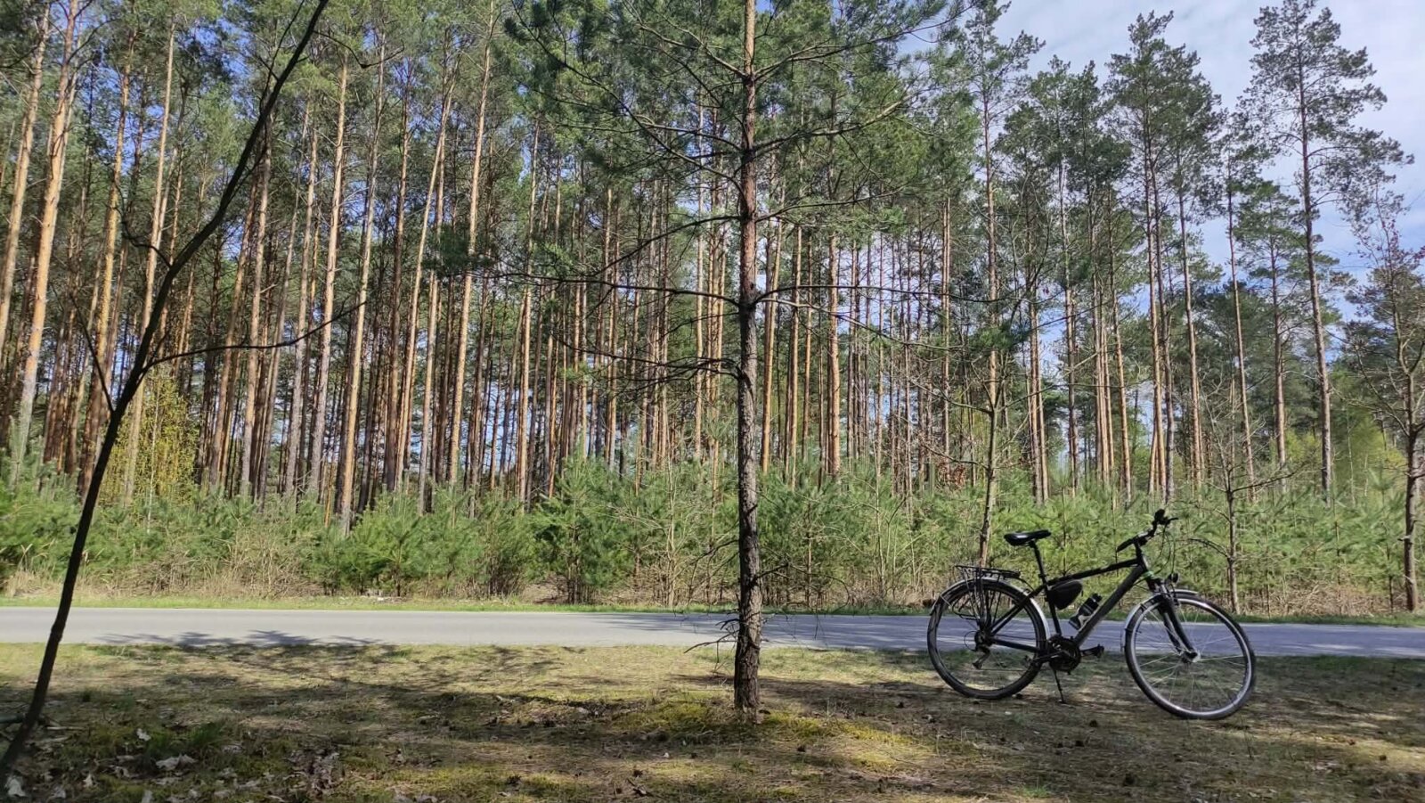 50 km przyjemnej jazdy na rowerze. Fotki z krótkiego postoju w lesie.