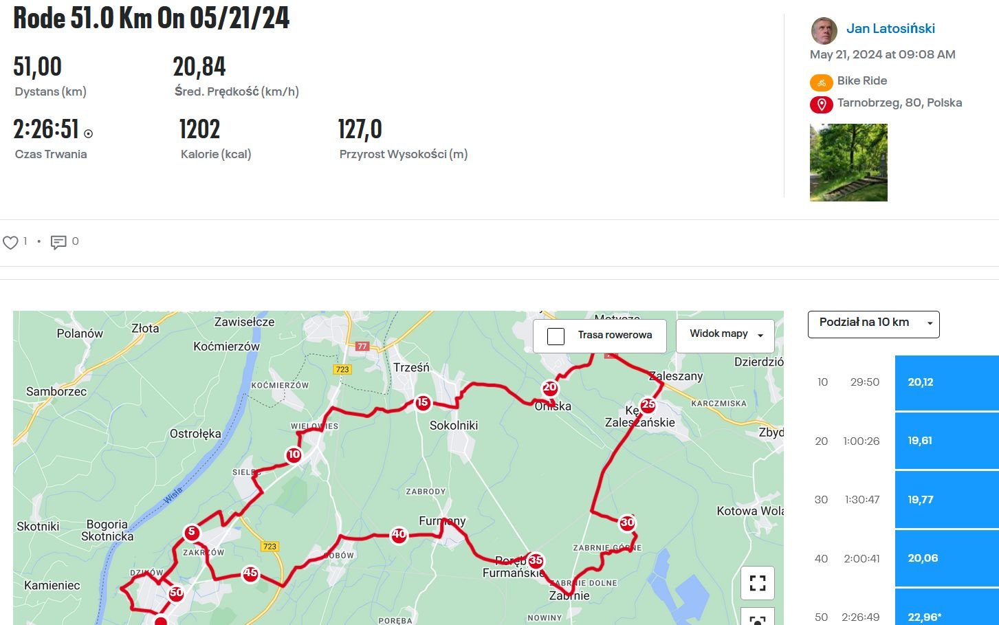 @koszalek Wiem jak to jest, bo kiedyś gdy miałem w domu dzieci to także było trudno gdzieś się ruszyć, ale czasem się udało. Dziś mam dzieciaki dorosłe, samodzielne, mieszkające oddzielnie w innych miejscach Polski, a najstarsza córka jest w Wiedniu, tam pracuje, więc dysponując dużą ilością wolnego czasu częściowo poświęcam rowerowym wycieczkom po okolicach Tarnobrzegu.