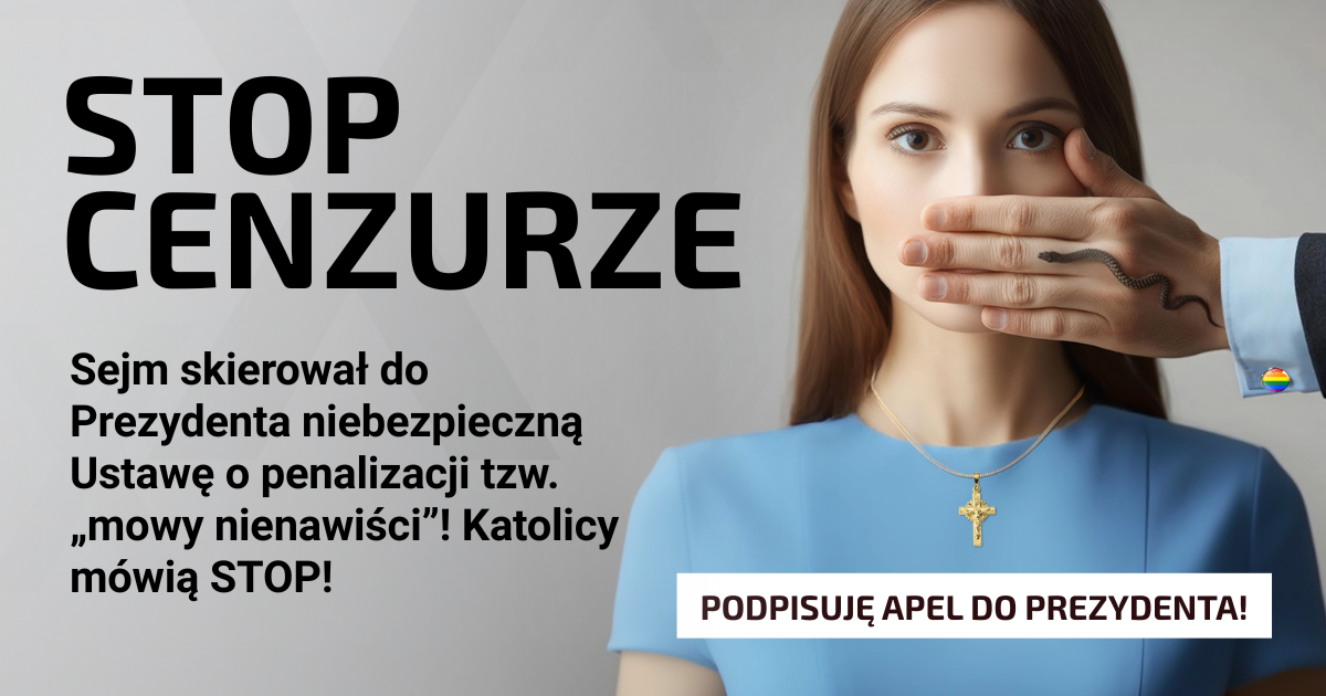 Dziś cenzurują Kościół – jutro zabronią Ci wierzyć!Sejm uchwalił projekt Ustawy o penalizacji tzw. „mowy nienawiści”, który obecnie znajduje się w…Zobacz więcej