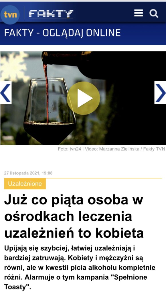 18 października portal Onet opublikował artykuł pt. „Przebojowe, wykształcone i pijane. Dlaczego współczesne kobiety coraz częściej sięgają po kieliszek?”