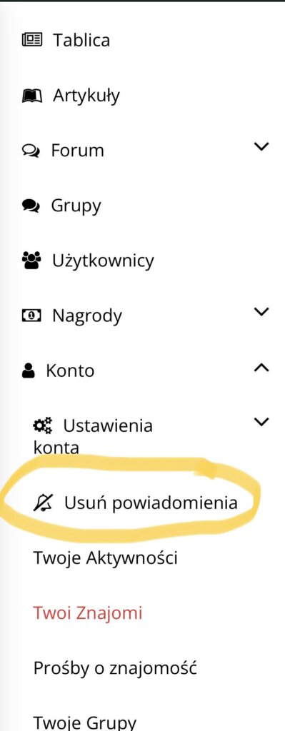 (Usuń powiadomienia), która już wcześniej działała, ale nie była dostępna