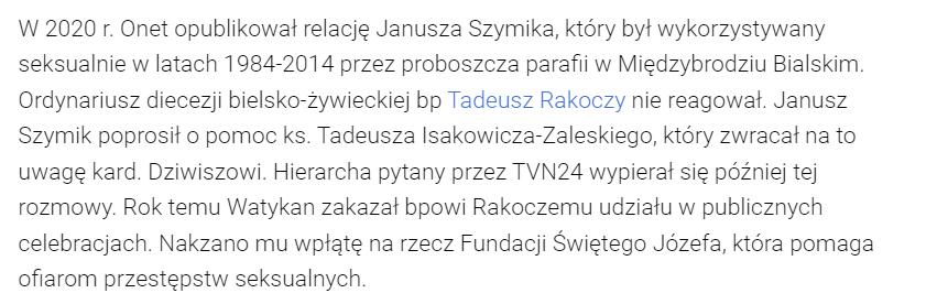 @chicku nie wiem. Tu mam to z dyskusji o Dziwiszu. Faktycznie zgłoszone tylko do biskupa, nie wiem dlaczego nie tradycyjną drogą do sądu? Ksiądz to obywatel jak każdy inny, może mieć normalny, uczciwy proces. Powinien. Dziwne to trochę.