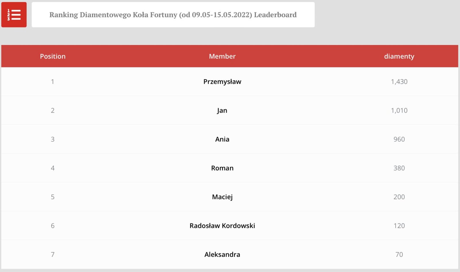 Konkurs Diamentowego Koła Fortuny za okres 09.05 – 15.05.2022 został rozstrzygnięty.