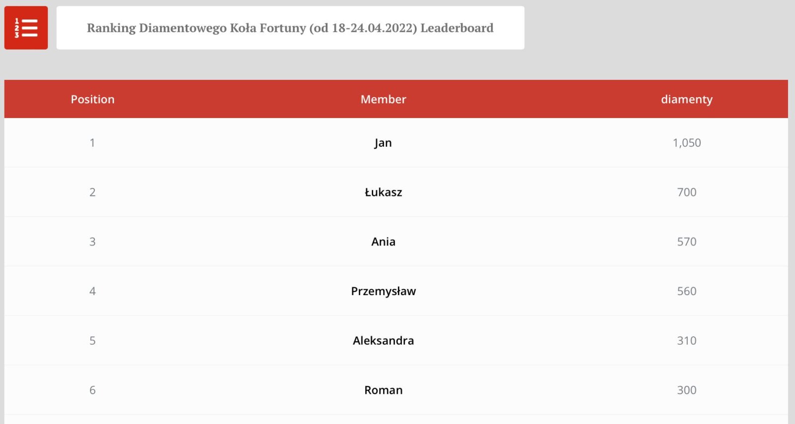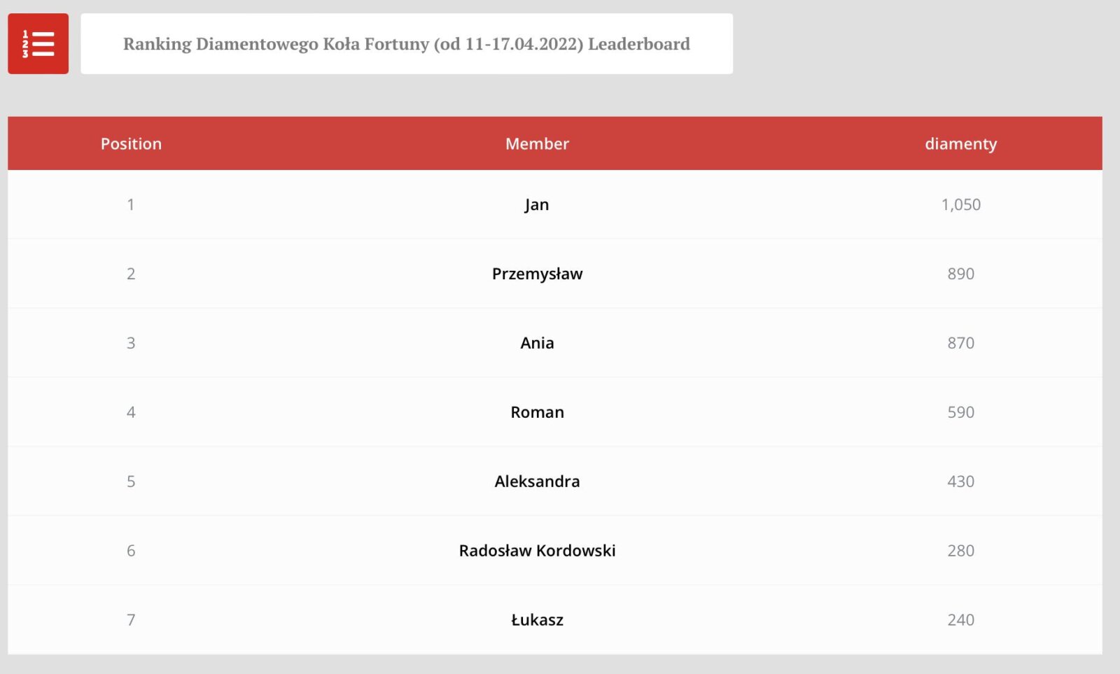 Konkurs Diamentowego Koła Fortuny za okres 11.04 – 17.04.2022 został rozstrzygnięty.
