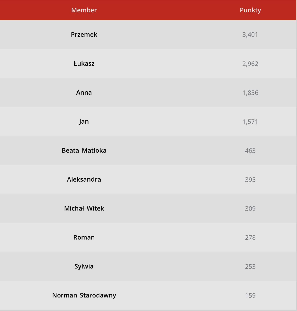 Gratulacje dla zwycięzców z zeszłego tygodnia.