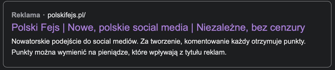 Zabawa się dopiero zaczyna. Google zaakceptowało reklamę Polskiego Fejsa i jest ona już wyświetlana w wyszukiwarce. Twitter zaakceptował aplikację logowania i można się zalogować kontem Twittera.