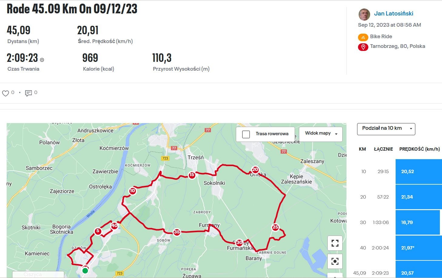 Wrzesień jest idealny do jazdy na rowerze, więc w kolejnym 12-tym dniu września zaliczyłem 12-ta rowerową przejażdżkę. Łączny dystans tych 12 tras: ponad 500 km. A łącznie w tym roku (do dnia dzisiejszego) przejechałem 5200 km 🙂