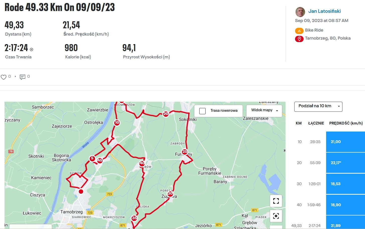 Podczas dzisiejszej rowerowej trasy fotek nie robiłem, więc załączam mapkę z podstawowymi danymi.