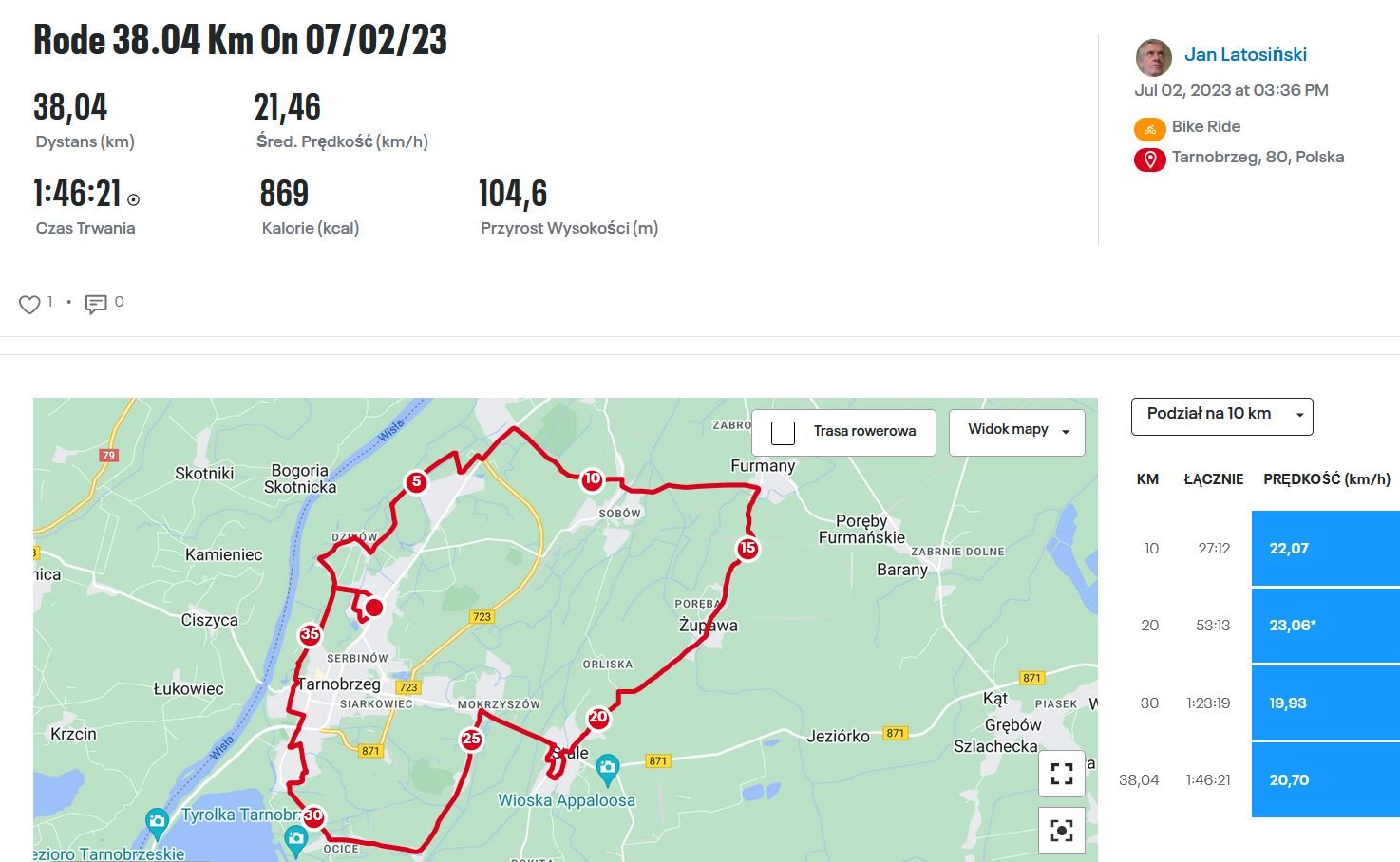 Tym razem krótsza trasa, bo tylko 38 kilometrowa. I dobrze bo zaraz po moim powrocie do domu zaczęło mocno padać.