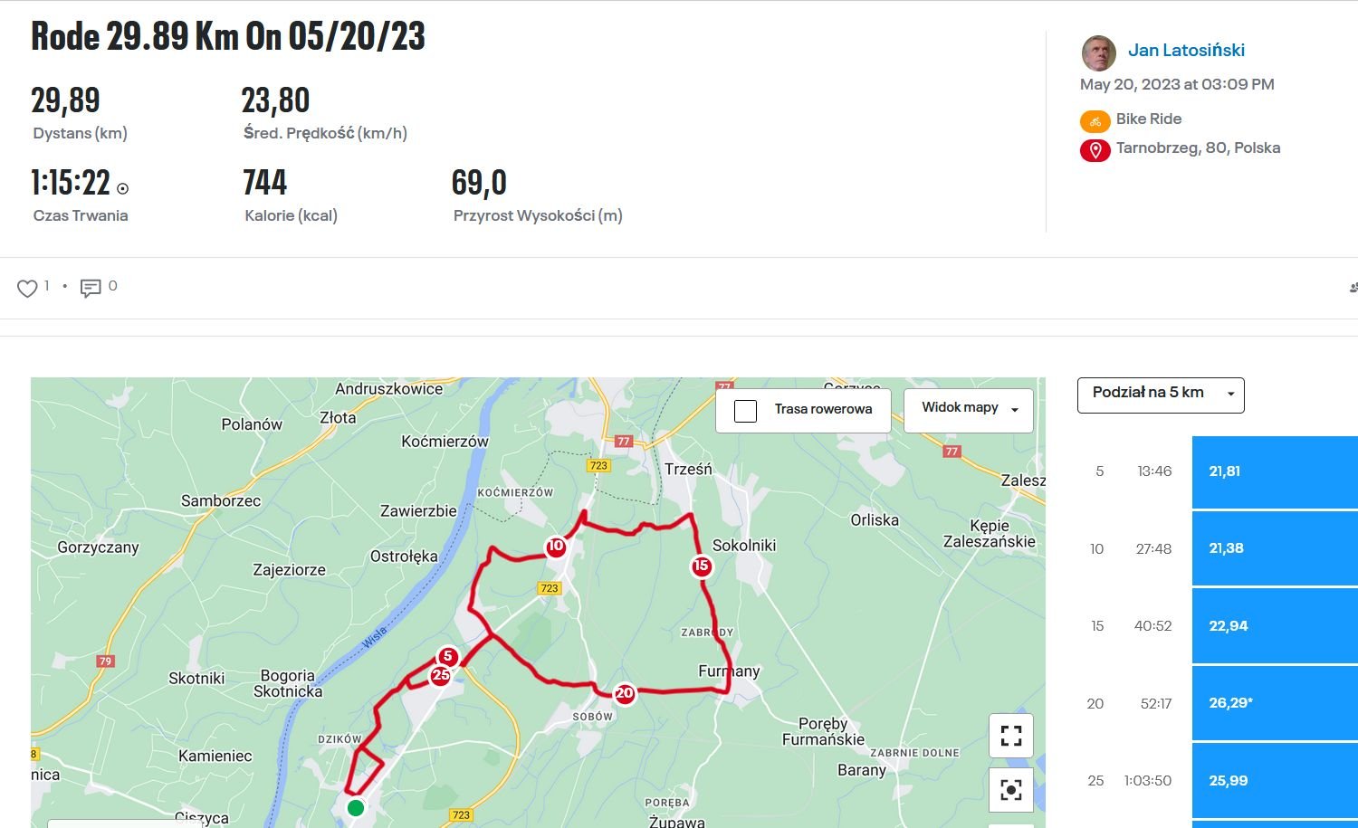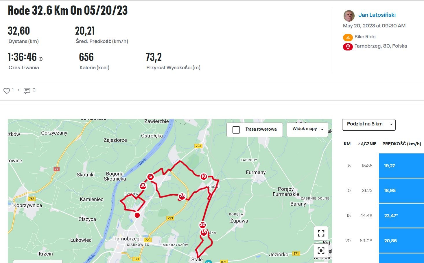 Po kilku deszczowych dniach pogoda się poprawiła, więc wyszedłem pojeździć na rowerze. Poniżej trasa dzisiejszej dopołudniowej przejażdżki na rowerze.
