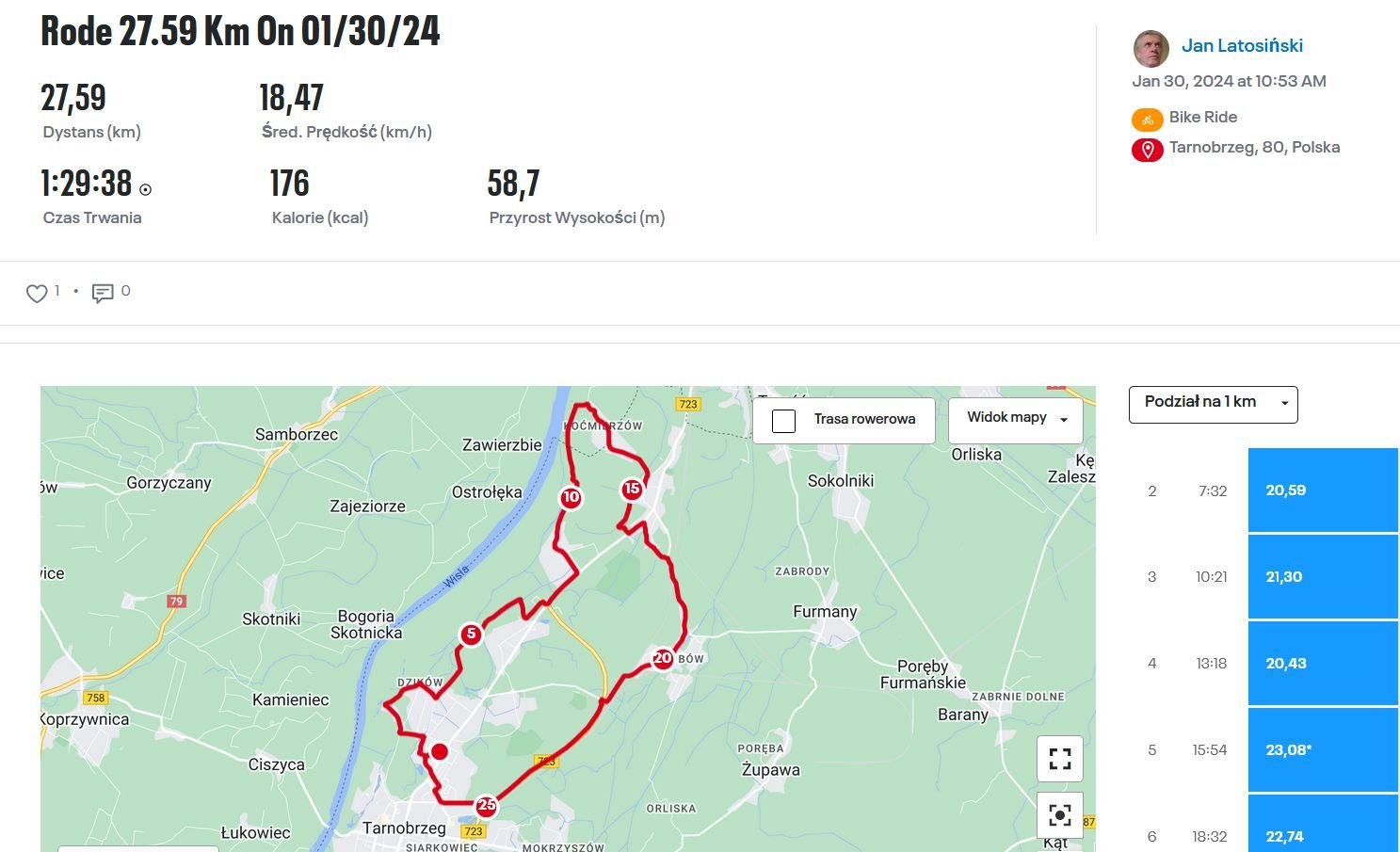 Dziś zainaugurowałem w tym roku jazdę na rowerze. Na początek skromny dystans. Fotek nie robiłem, więc załączam mapkę trasy z podstawowymi danymi.