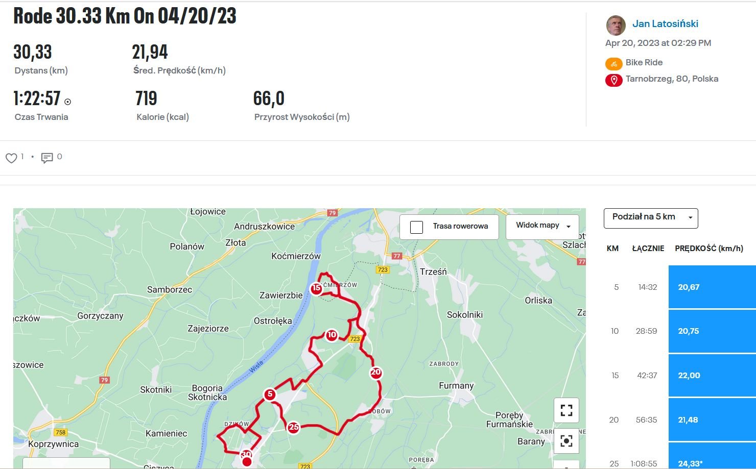 To była dość szybka jazda, średnia prędkość 21,94 km/h, to w tym roku rekord. Ale sezon dopiero się zaczął, więc jeśli zdrowie pozwoli to zamierzam ten wynik pobić.