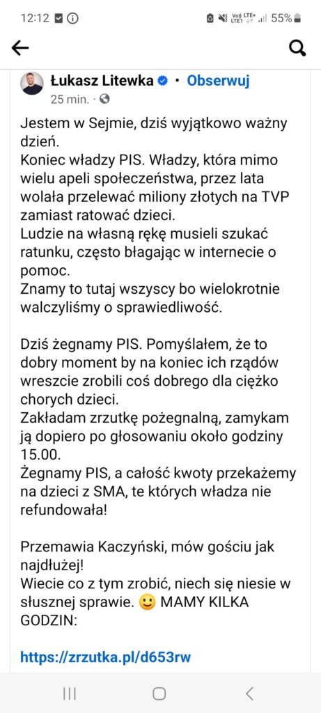 @chicku ja tak tego litewke to średnio cenie , zastanawiam się czy te zbiórki nie są trochę przejawem jego próżności w sensie „Wow wow jesteście team litewka, pokażcie ze jesteście w stanie pobić rekord w 5 min uzbierawszy ileś tam milionów ” . Wydaje mi się że w sumie to jemu to ma schlebiać ze ON jest taki mocarny ze ma taki wpływ na ludzi którzy sypia groszem. A po drugie oskarżanie pis ze nie finansował leków podczas gdy zwiększył nakłady na służbę zdrowia to jest kolejny przejaw zaklamiania