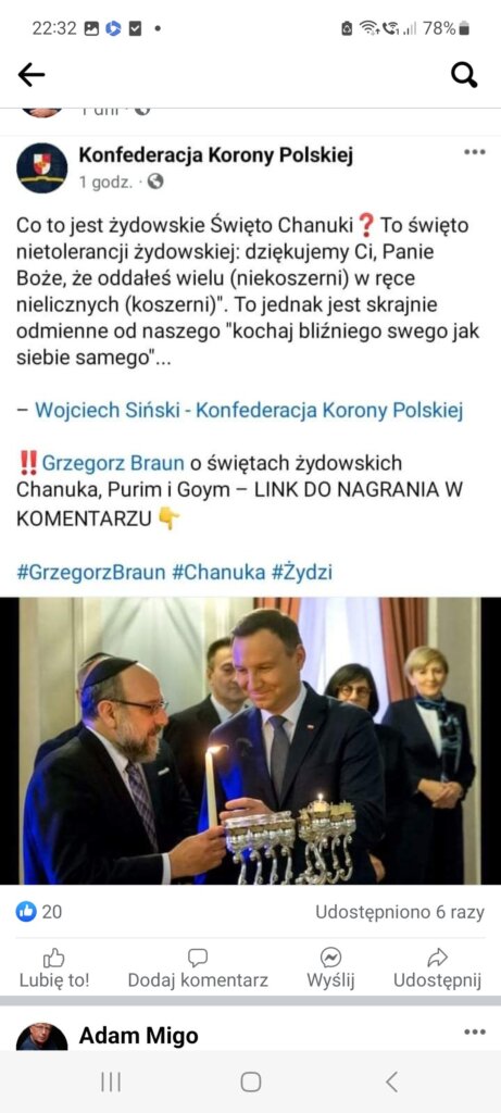 @joanna ja już dawno wiem że Duda,Morawiecki i im podobni to żydzi W zasadzie to mi nie przeszkadza,ale jak pomyślę co wyprawiają z moją wiarą,jak im przeszkadza chrześcijan to poprostu mnie gotuje Dlatego uważam że Braun dobrze zrobił