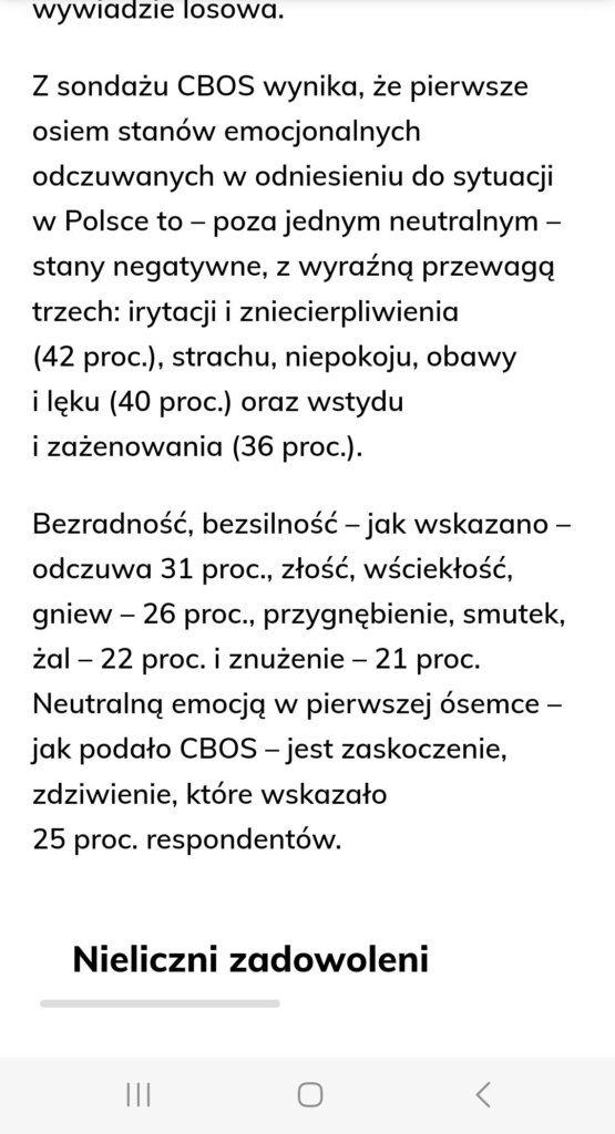 @joanna no wlasnie o to chodzi, że można było zaznaczyć kilka pozycji. Podejrzewam, że ci co zaznaczyli te pozytywne, to byli przeważnie w gronie tych 18%. Bo raczej niewielu zaznaczyło jednocześnie np. strach i radość..