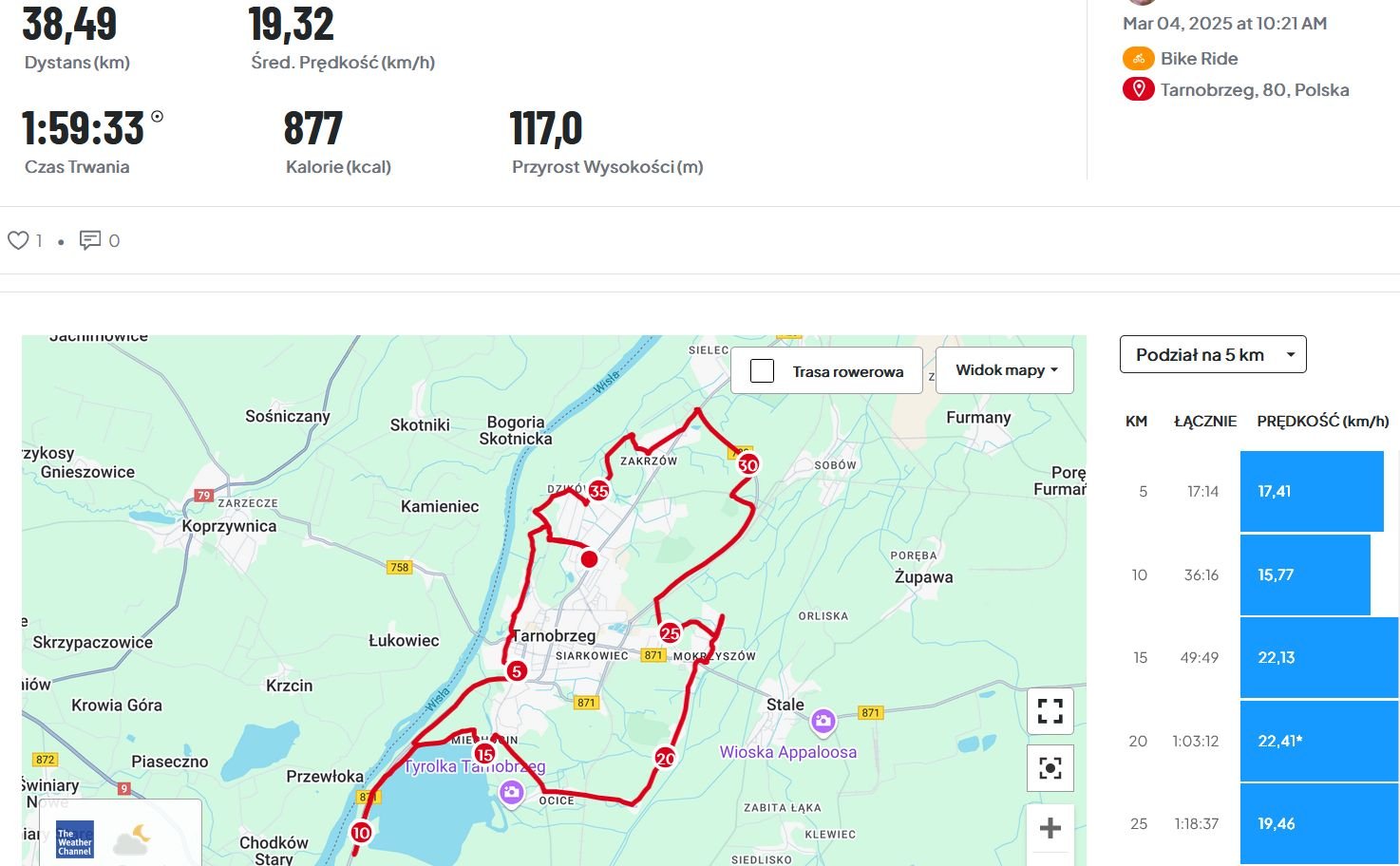 Zaświeciło słoneczko, więc siadłem na rower i przejechałem 38,5 km. Fotki są z postoju, krótkiego odpoczynku plus mapka trasy.