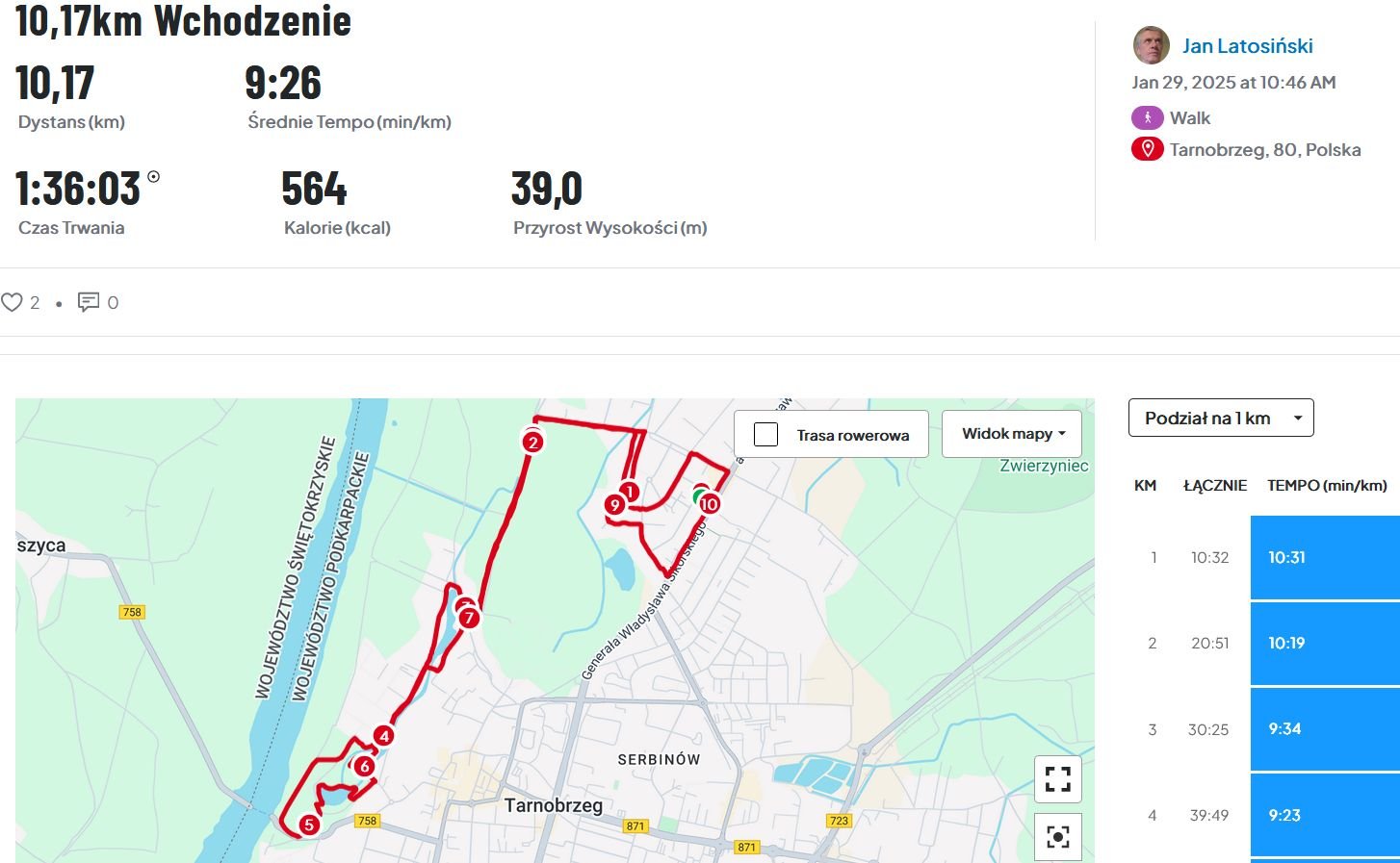 Dziś zaliczyłem dość szybki marsz na dystansie 10 km. Pogoda była idealna na takie wyzwania.
