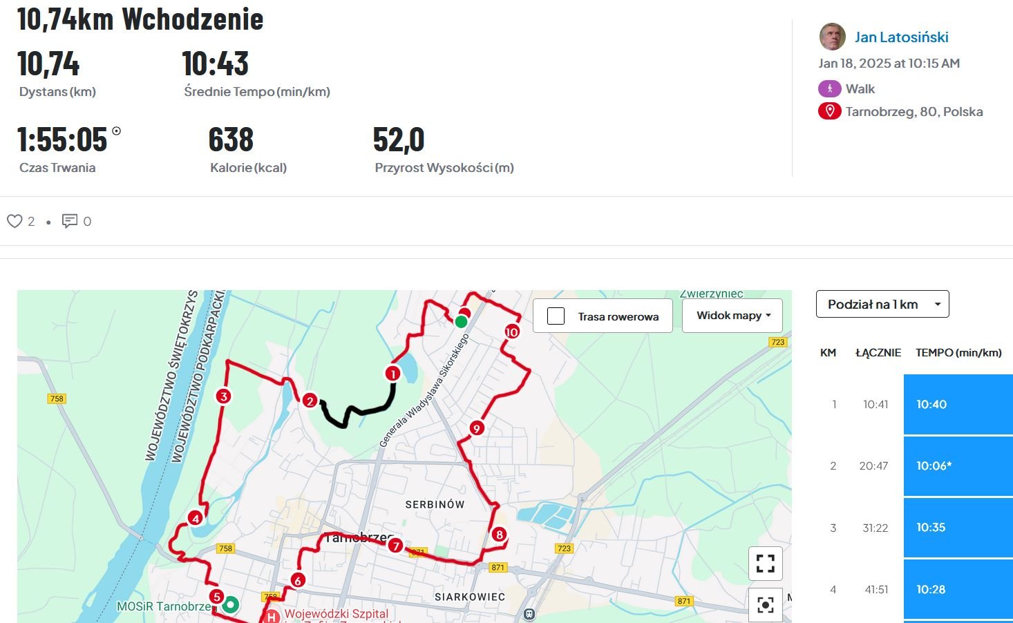 Mapka dzisiejszego ponad dziesięciokilometrowego spaceru po mieście. Spędziłem prawie 2 godziny w ruchu na słoneczku 🙂