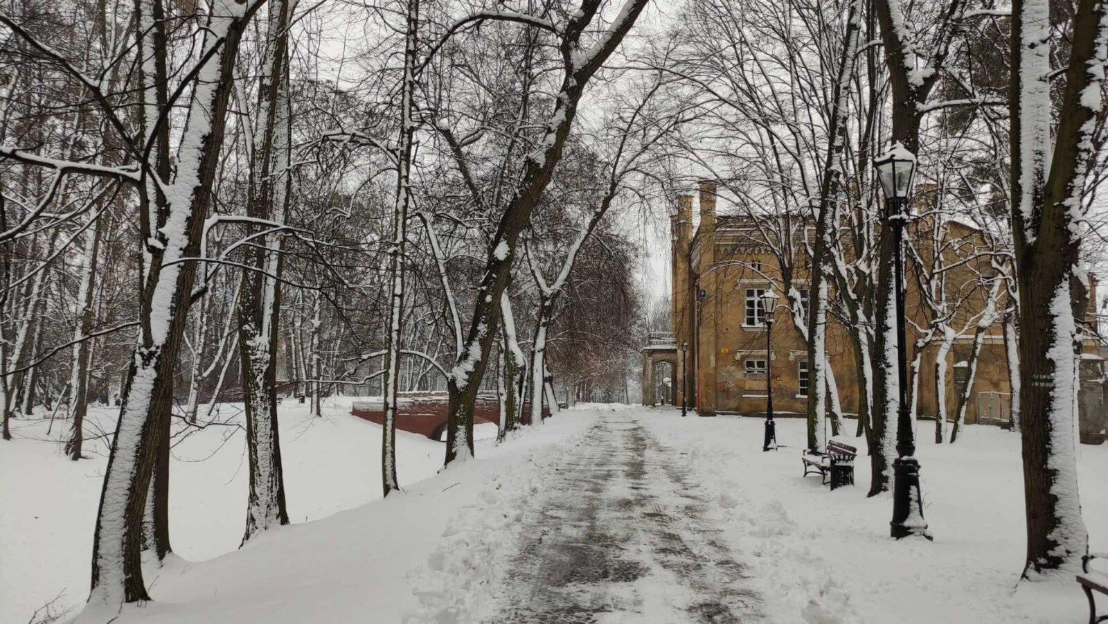 Dosypało śniegu nocą i mamy oto taką zimę w Tarnobrzegu. Na zdjęciach okolice Zamku Tarnowskich w Dzikowie (obecnie Tarnobrzeg).