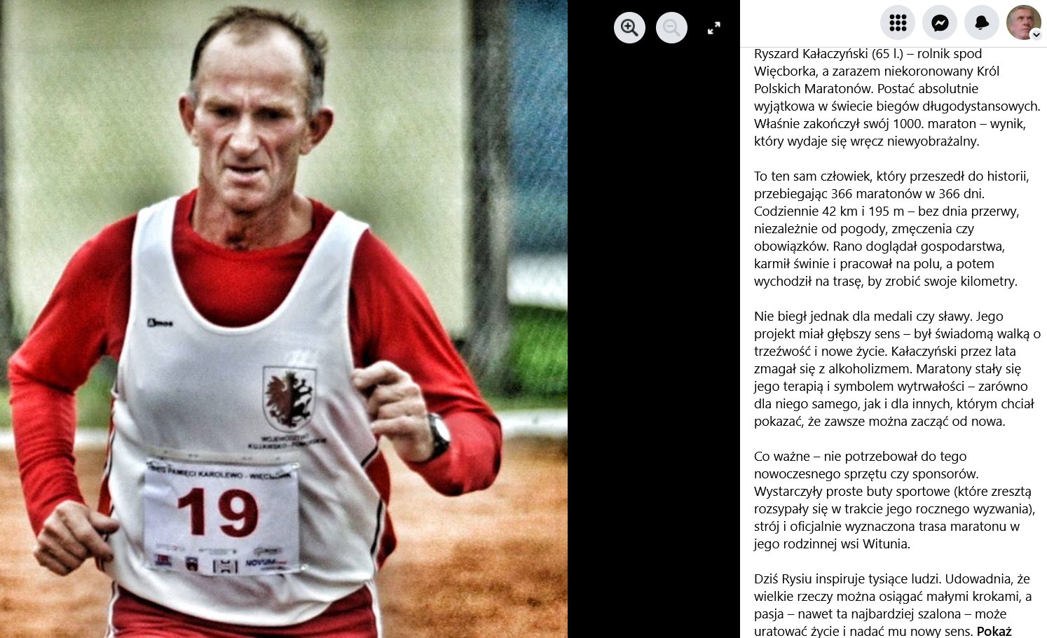 Ryszard Kałaczyński (65 l.) – rolnik spod Więcborka, a zarazem niekoronowany Król Polskich Maratonów. Postać absolutnie wyjątkowa w świecie biegów długodystansowych.