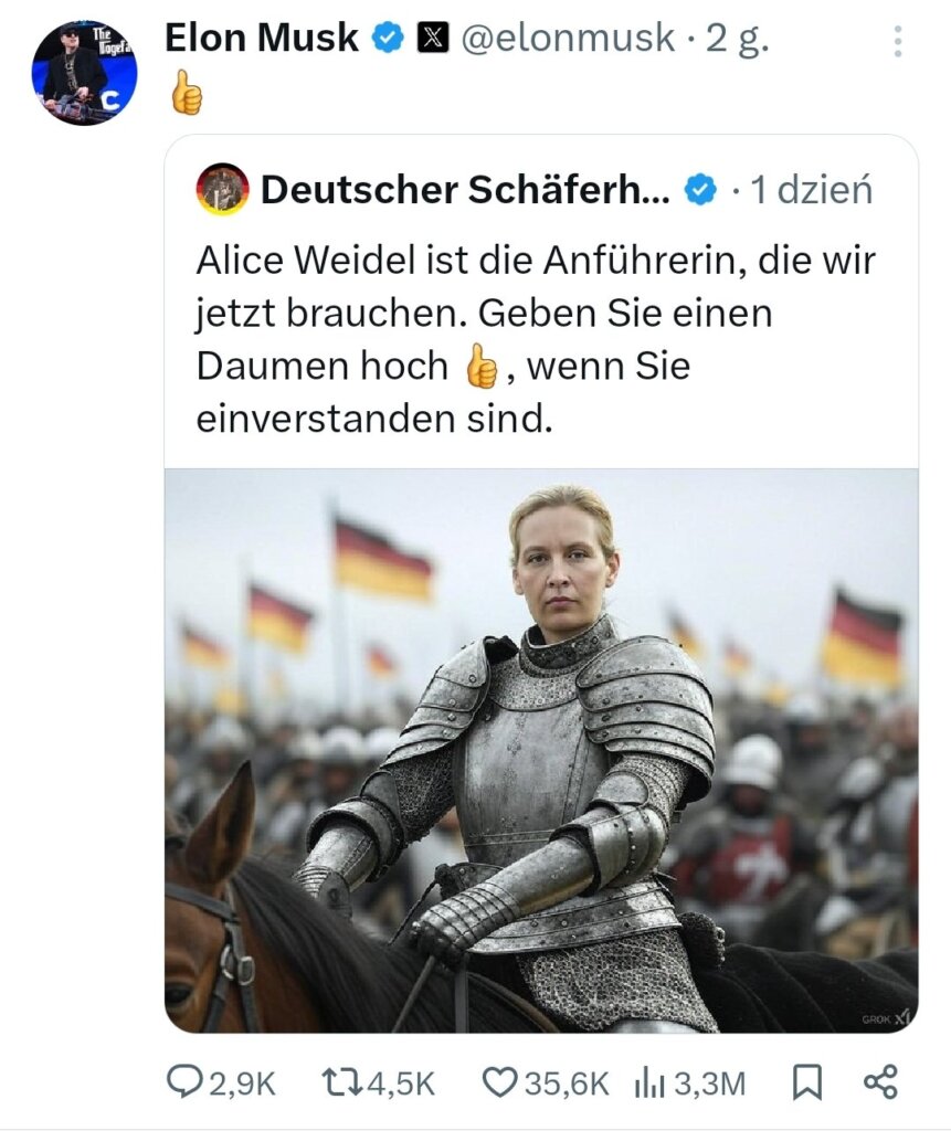 „Alice weidel jest liderka,której potrzebujemy. kto się zgadza, palec w górę”. Niewesoło… Afd jest.in. przeciw reparaciom dla Polski,czy za tym by zerwać z polityką wstydu za 2 ws…