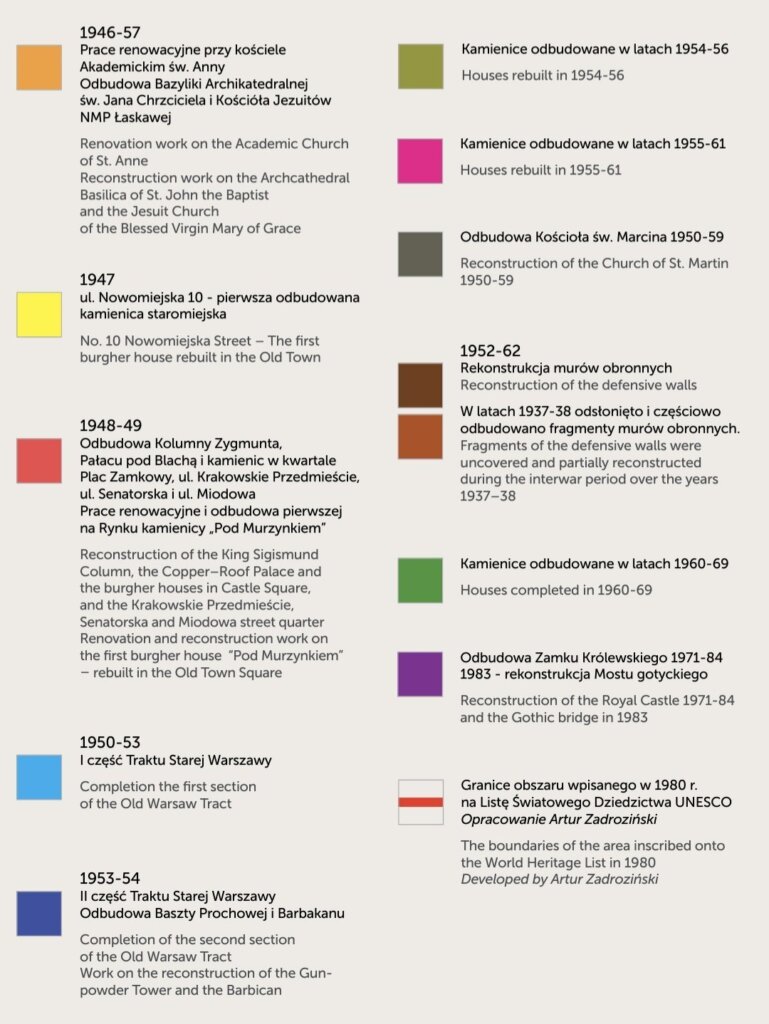 To jest świetne. Etapy odbudowy Starówki warszawskiej (najwięcej odbudowano w latach 50). A tuż przed zakończeniem całość wpisano tę wspaniałą realizację na listę UNESCO jako najmłodszy zabytek świata