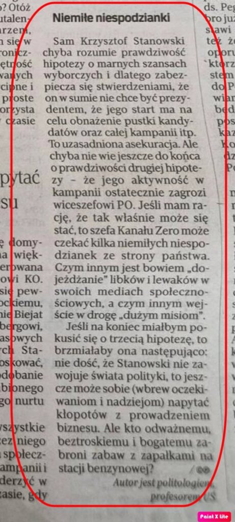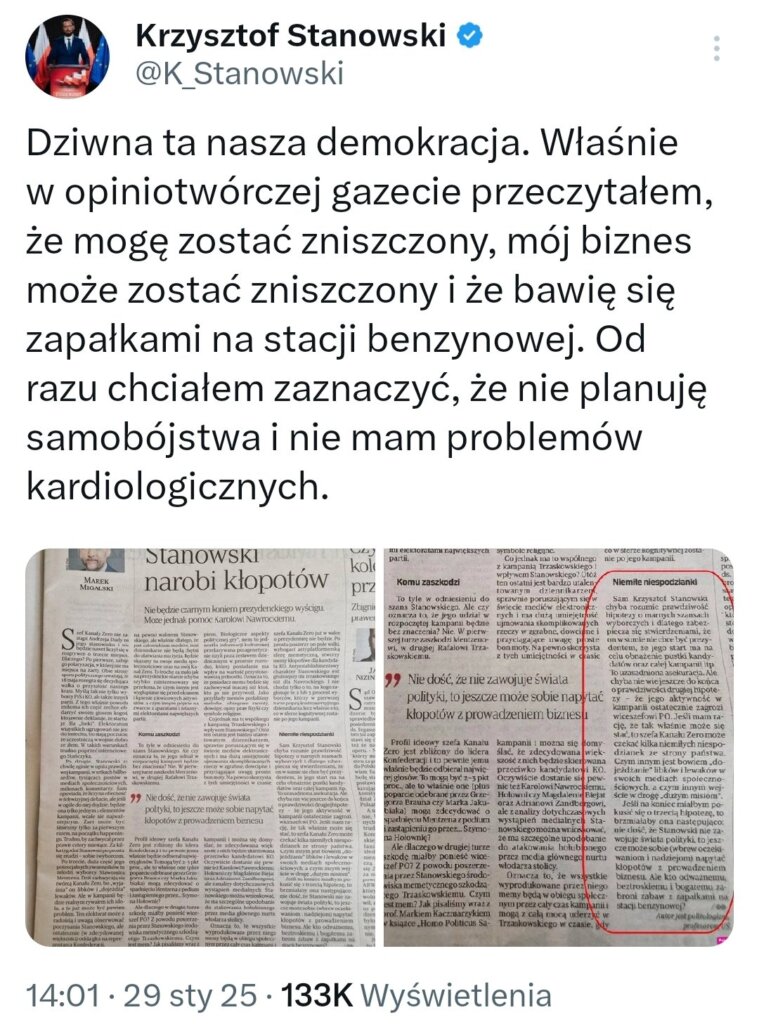 @chicku Aktualnie Polską zarządza mafia polityczna podporządkowana mafii brukselsko-berlińskiej. Stanowski jest straszony bo jest zagrożeniem nie tylko dla kandydata na prezydenta RP obecnej władzy – Trzaskowskiego, jest szczególnym zagrożeniem bo dysponuje niezależnym medium – Kanałem Zero, które szybko dociera do dużej ilości odbiorców (o…Zobacz więcej