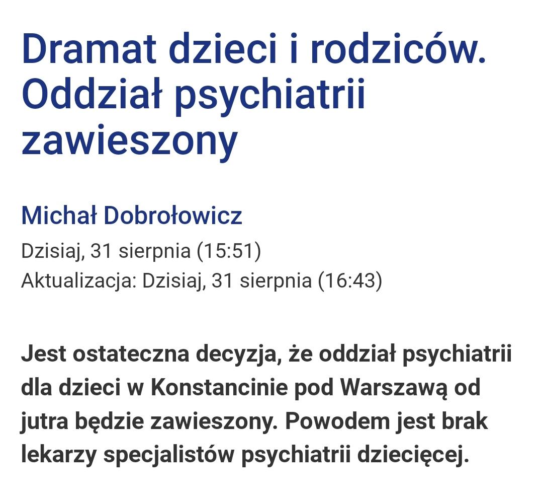 Dużo oddziałów psychiatrycznych się zamyka a potrzeby coraz większe 🙁