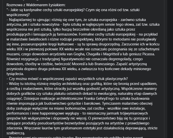 dobry tekst. to tylko fragment wywiadu, całość jest tutaj: https://www.facebook.com/photo/?fbid=2592630434098436&set=a.237817872913049