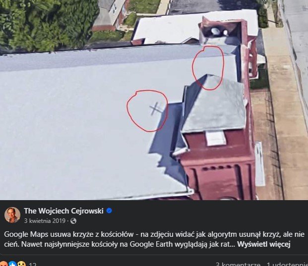 wg mnie na pewno jest to przypadkowy efekt powstały przez upraszczanie brył. Gdyby Google usuwał krzyże, to by też usunął z cienia.6 Komentarzy-