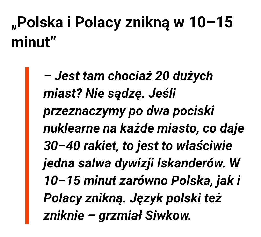 Propaganda. Jeśli Rosja zechce wojny z NATO to raczej nie polskie miasta będą pierwszym celem na które spadną rakiety z nuklearnym ładunkiem.