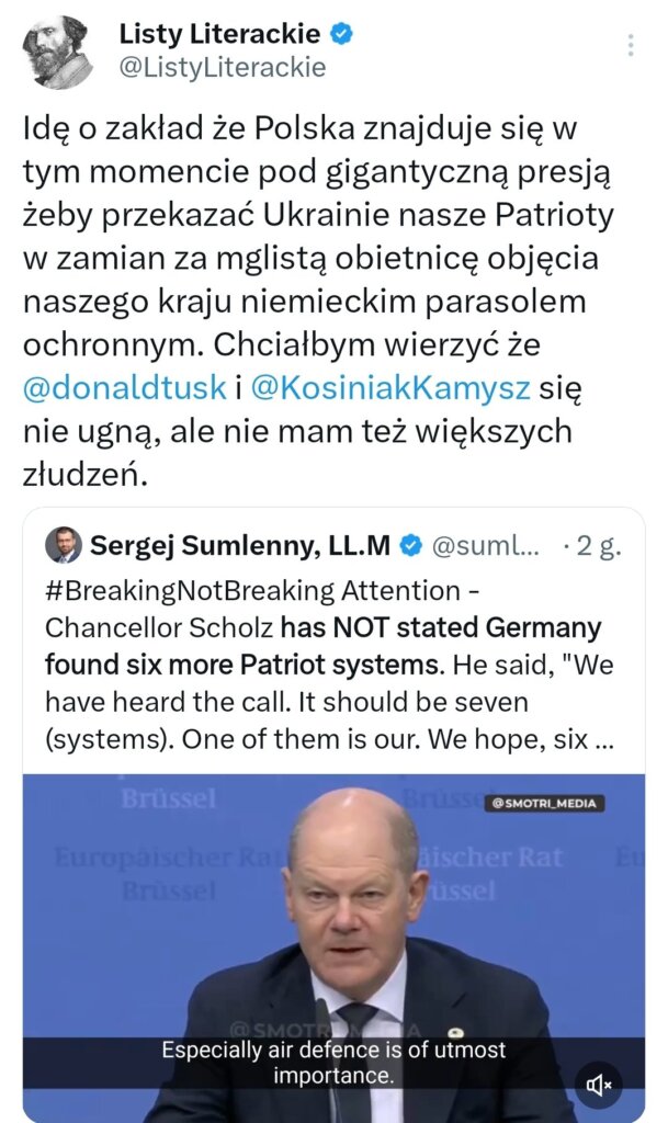 @eljot60 Nie możemy liczyć na to, że nas inni obronią. Sojusz może nas wspomóc. Musimy mieć silną i dobrze wyposażoną armię. Jeżeli rządzący chcą się oprzeć na pomocy Niemiec, czy innych krajów i nie rozwijać naszej obronności, popełniają duży błąd.