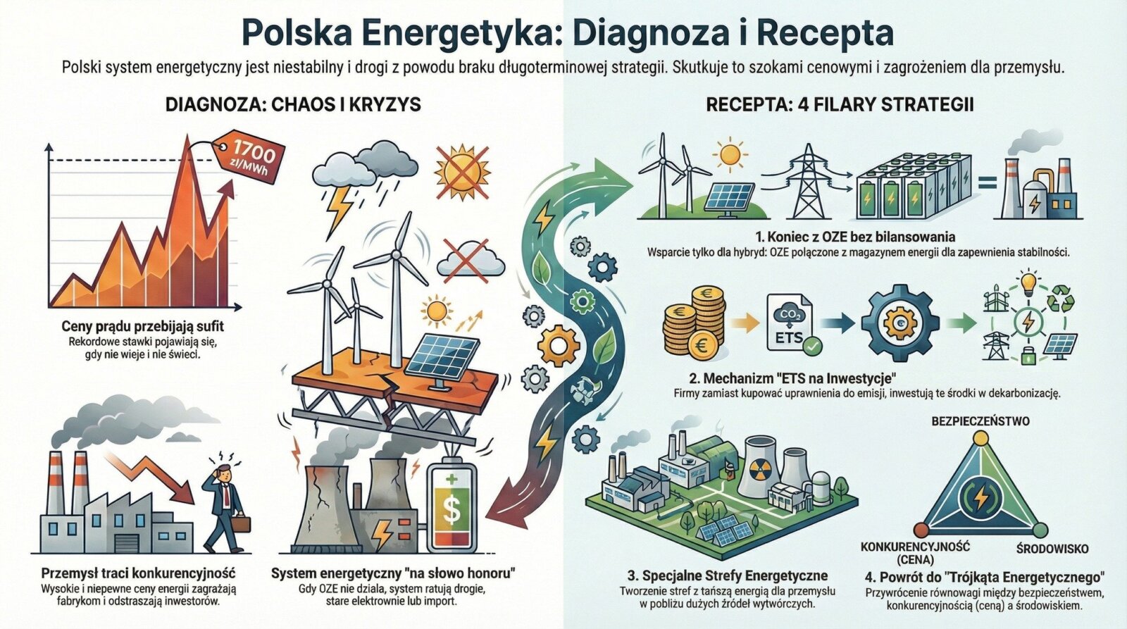 🟥 Mamy 2025 rok i zamiast stabilnego miksu – mamy system działający na słowo honoru. Kiedy OZE stają, musimy albo: