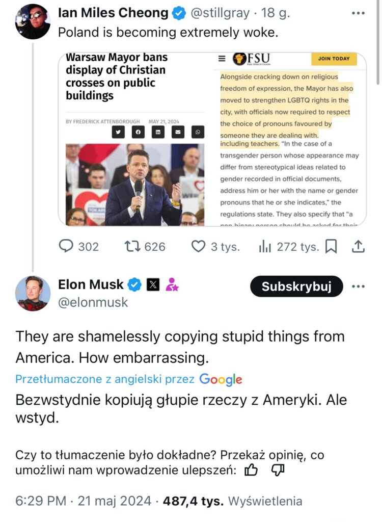 Dodam, że to nie tylko wstyd, ale także głupota. Pewnie wynika z błędów ideologii, którą wyznaje i propaguje nie tylko Trzaskowski ale wielu jemu podobnych. Ciekawe czy Hołownia, który podobno będzie konkurował z Trzaskowskim w wyborach prezydenckich na temat tego „opiłowującego” katolików zarządzenia się wypowiedział.