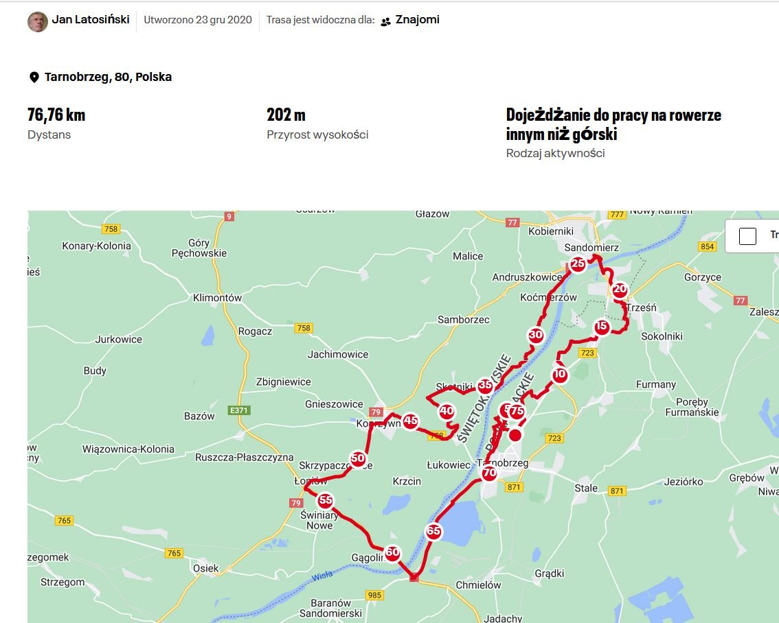 Jazda na rowerze, dystans: 53 km, okolice Tarnobrzegu.